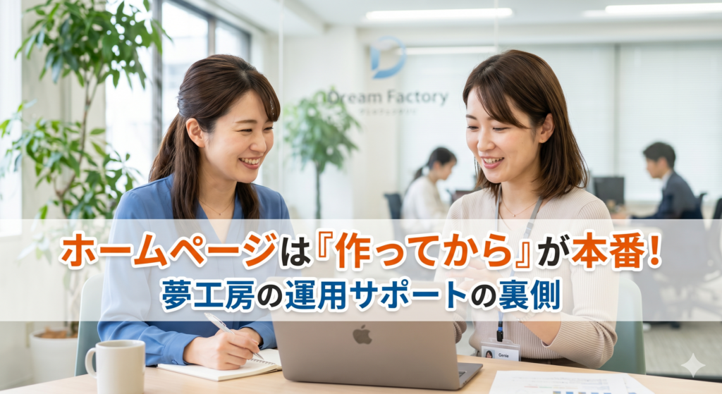 夢工房で制作したWebサイトは、納品して終わりになることなく、その後のコンサルティングを担うことが多いです。納品からその後まで、トータルでお任せください!