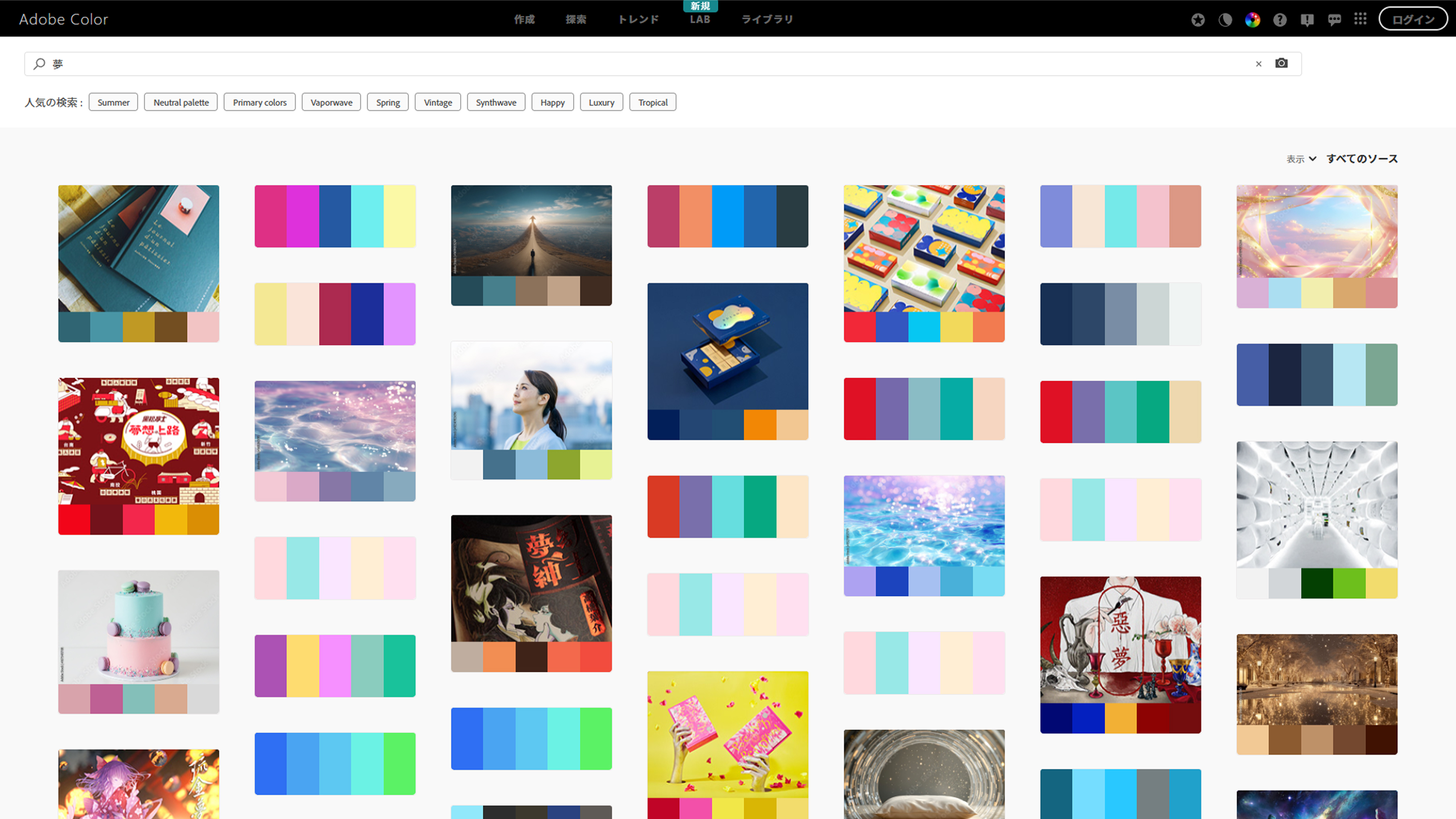 世界中のクリエイターが作った配色や、業界別(ファッション、建築、データビジュアライゼーション等)の流行色が検索できます。